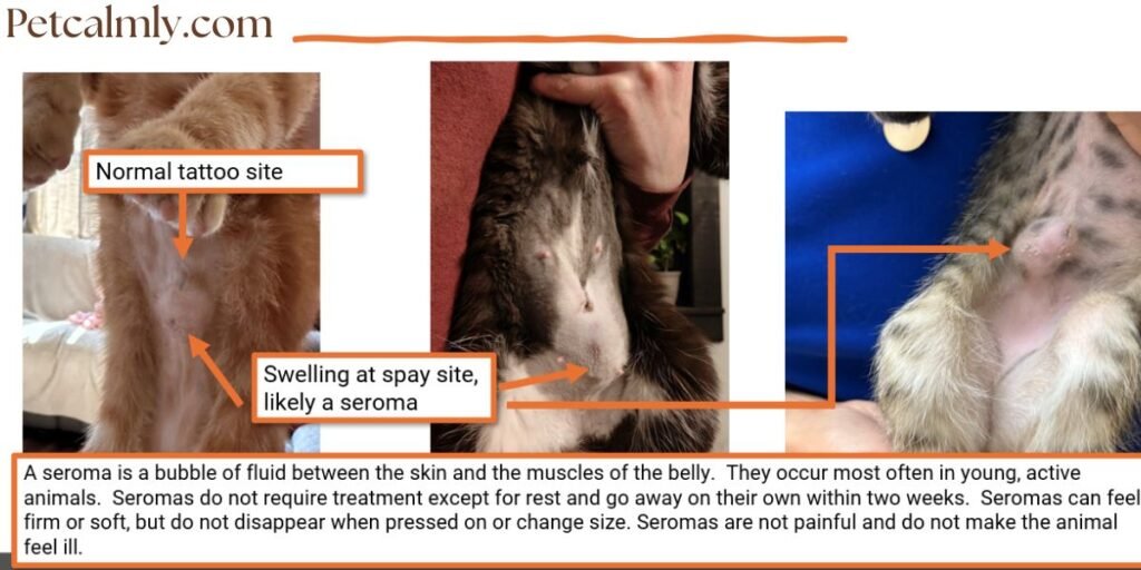 Contact your vet right away if you see excessive swelling, pus, foul odors, or the incision opening these signal infection.